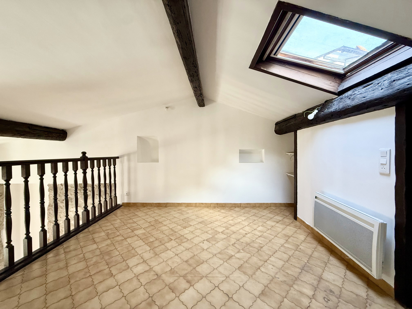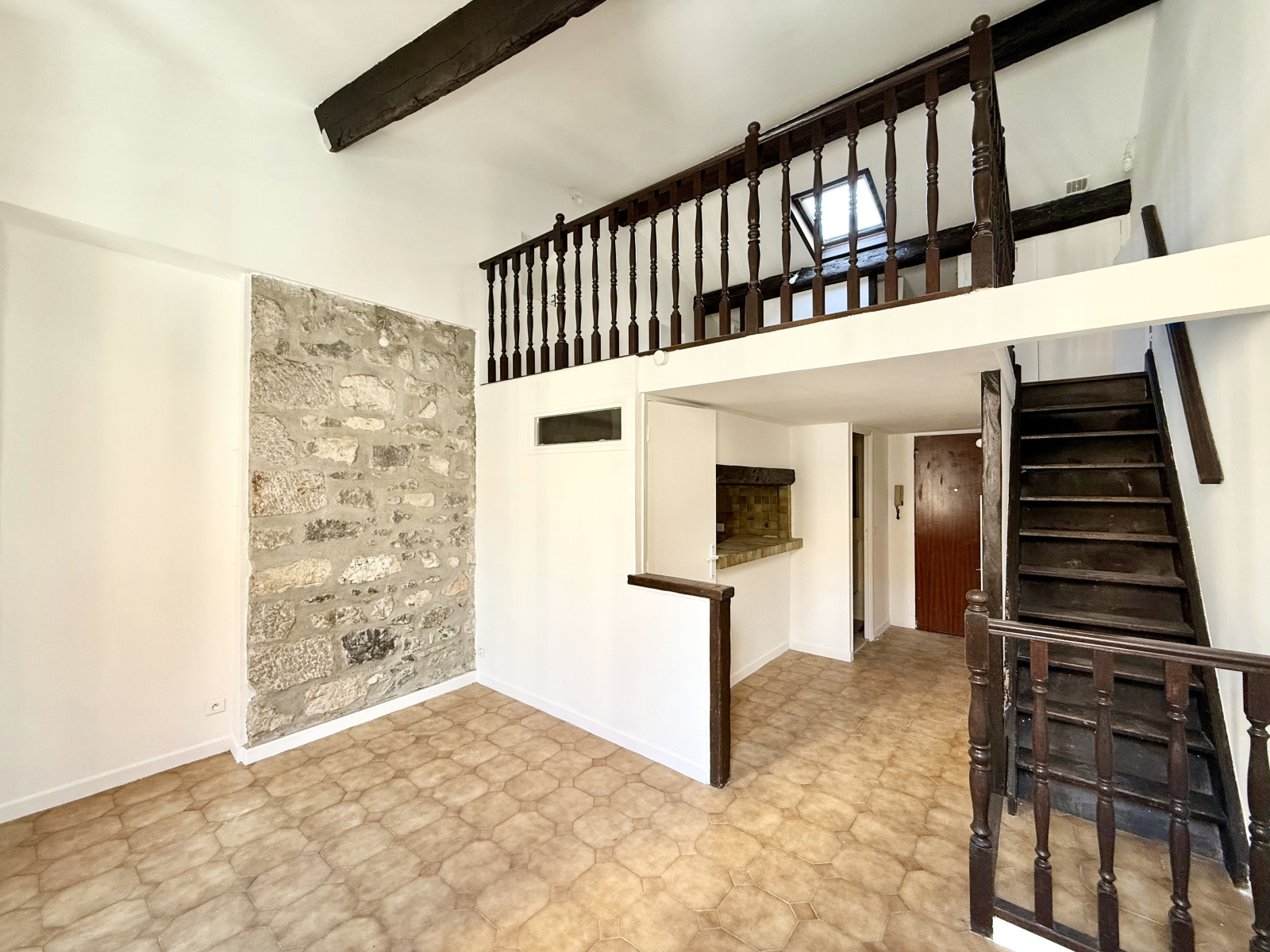 Une belle mezzanine avec hauteur sous-plafond pouvant faire office de chambre avec rangement vient s'ajouter à l'ensemble.