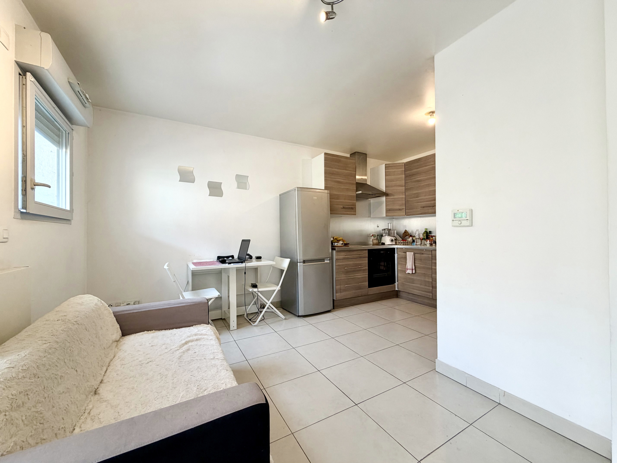 En étage, ce bien dans une résidence récente se compose d'une entrée, un salon avec cuisine ouverte sur le séjour, une chambre, salle d'eau avec wc.
